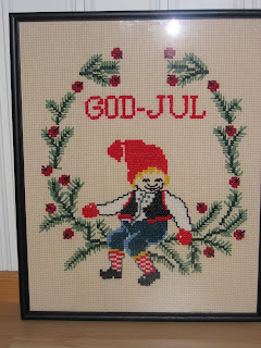Må også vise dette broderiet som er det eneste jeg noen gang har laget, men som skal frem for 3. julen nå, og det er koselig. Blir jul når jeg ser denne nissen......